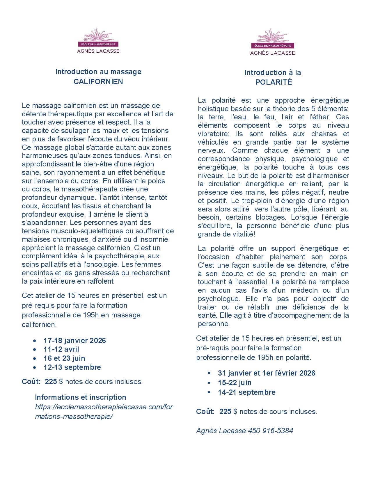 Introduction Massage Californien/ Introduction à la Polarité avec Agnès Lacasse
