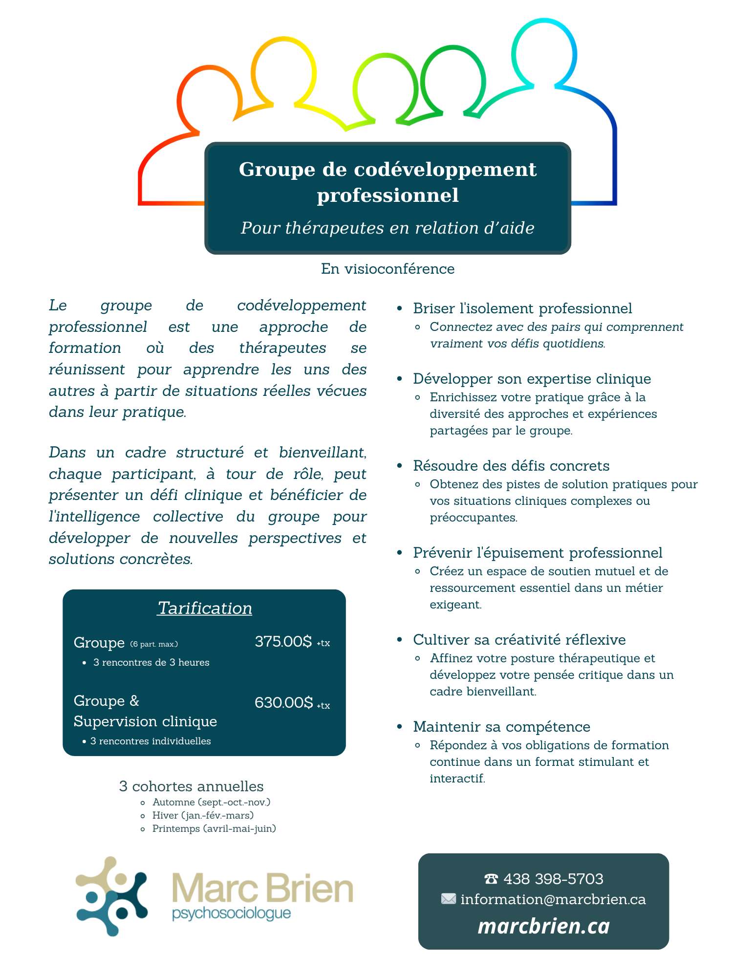 Groupe de codévelopement professionnel pour thérapeutes en relation d'aide