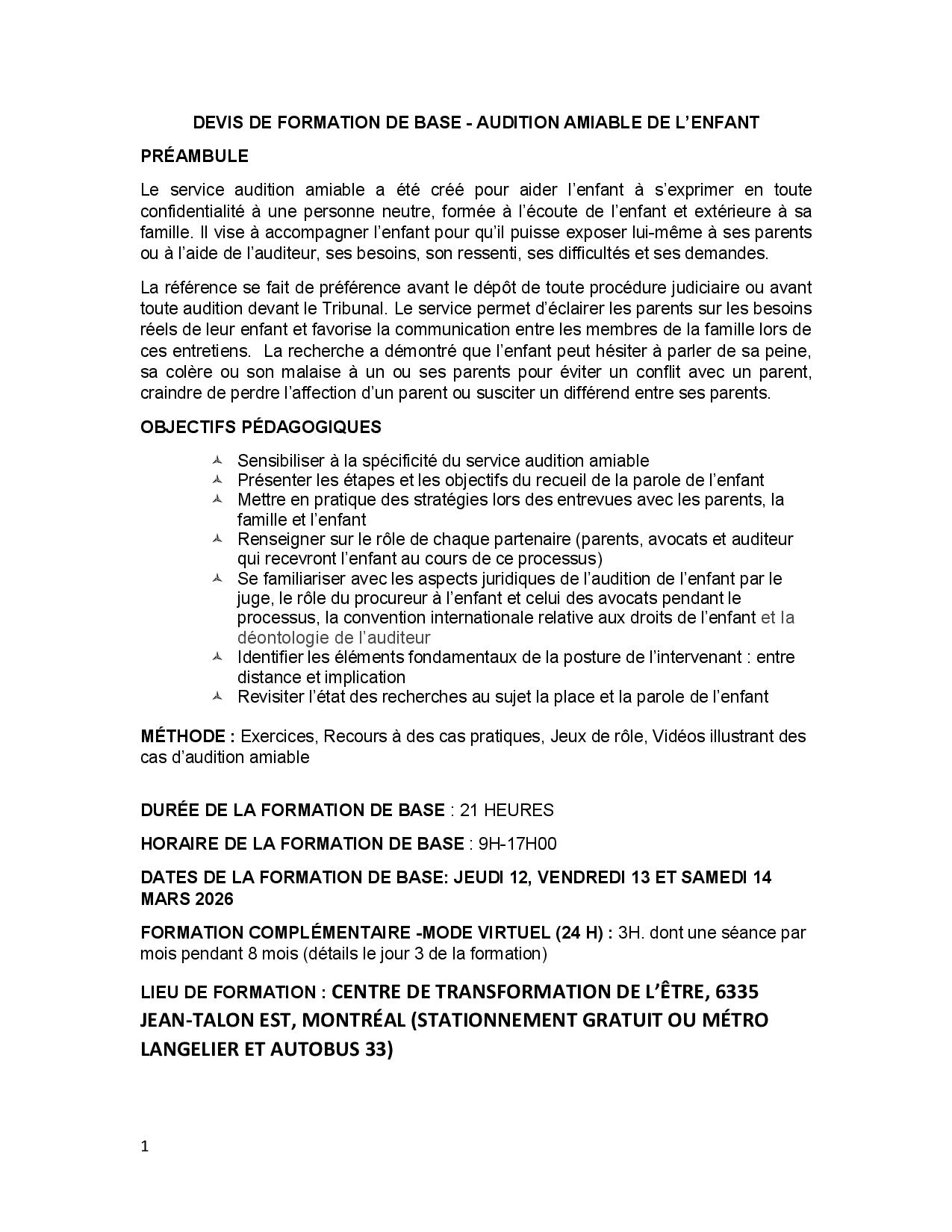 Formation de base: Audition amiable de l'enfant