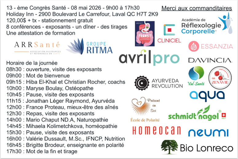 Site internet : https://arrsante.ca/events/congres-sante-2026/