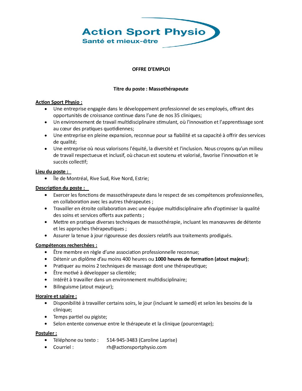 Massothérapeute recherché.e