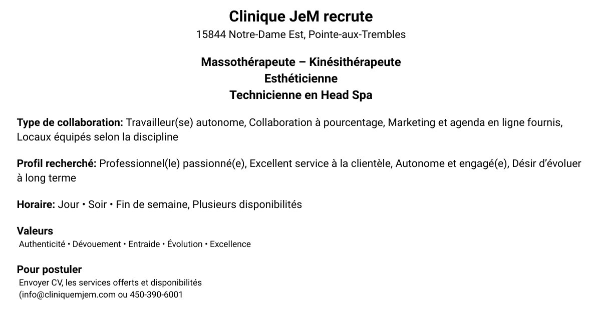 A la recherche de Massothérapeutes - Kinésithérapeutes