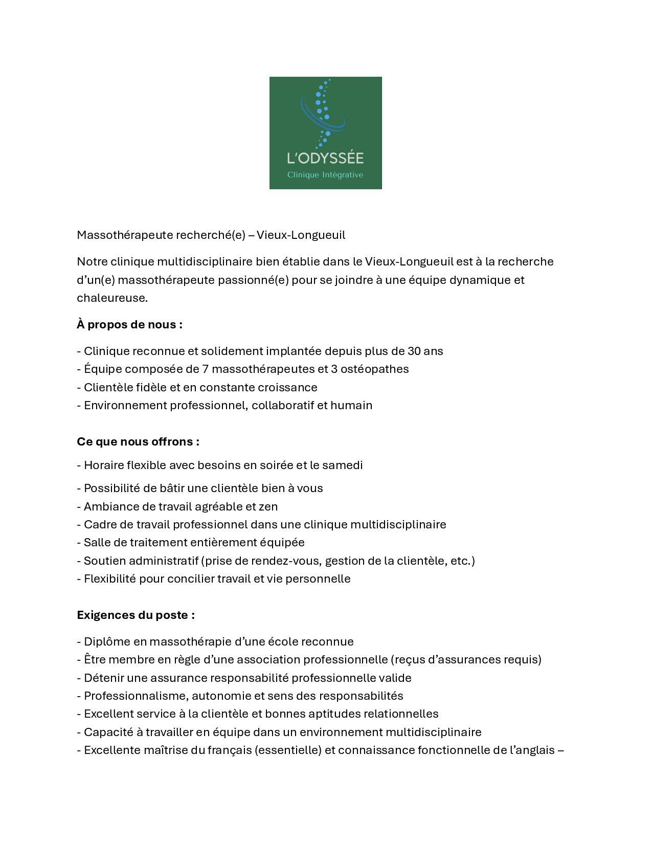 Massothérapeute recherché(e)